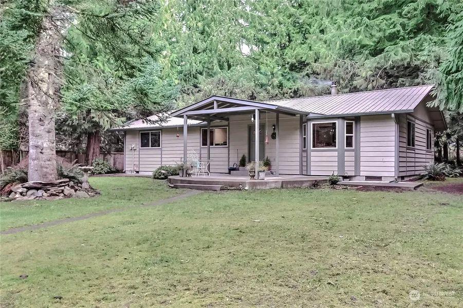 A Pacific Northwest paradise! 1.2 gated, fully fenced acres, with flower and vegetable beds, fruit trees, greenhouse and so much more. Oversized covered porch is a fantastic entry to a tidy home with 3 bedrooms and 1 bathrooms. The house has a living room w/vaulted ceilings, a cozy wood stove, dining room, and a kitchen with great storage. The laundry room has access to the backyard where there is a woodshed and a shop with heat, electricity, use as a studio, wood shop, playroom, etc. The carport provides three covered parking spaces. Located at the end of a dead-end road and surrounded by mature Western Ceders, a butterfly flower bed, koi tank w/fish, rosemary bush, glorious wisteria, fruit trees and more. Make this oasis yours!