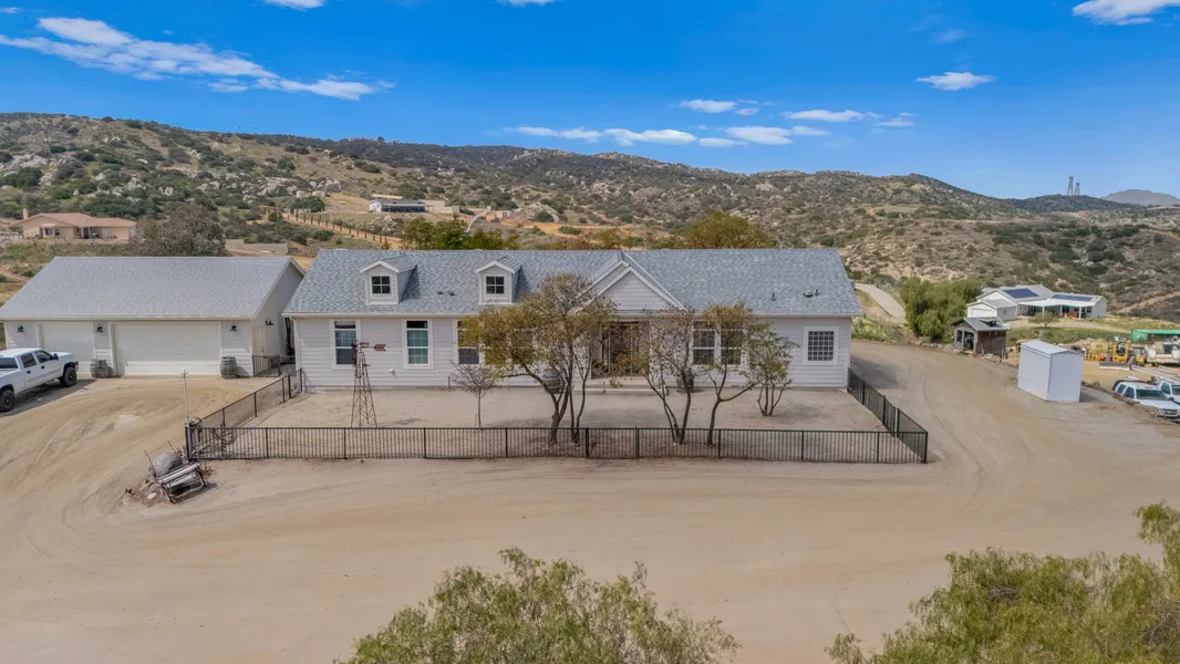 Your Ranchita Awaits! Escape to the peaceful hills of Nuevo with this charming 2,000 sq fr 3-bedroom, 2-bathroom (plus a bonus room/office) modular ranch home, privately nestled on 2.6 acres of usable land. This move in ready home has been recently updated with new flooring, fresh interior and exterior paint, and a modernized kitchen. Stay comfortable year-round with energy efficient split air units for A/C and a brand-new roof for peace of mind. Outside, you'll find everything you need for country living, including a huge detached 3-car garage, RV hook ups, fenced front and back yards for pets, and ample space for horses and livestock. Equestrians will love the horse corrals, round pen, and goat garden, while the chicken coops make farm-fresh eggs a reality. A large 20x40 shop with a concrete slab offers plenty of room for projects, storage, or a workspace. Entertain in style at your very own fun cowboy bar, perfect for hosting family and friends. Enjoy breathtaking views and easy access to miles of trails, ideal for horseback riding or off-road adventures. If you're looking for a private retreat with endless possibilities, this is it! Bring your animals, toys, and dreams—your ranch life starts here! Schedule your showing today!
