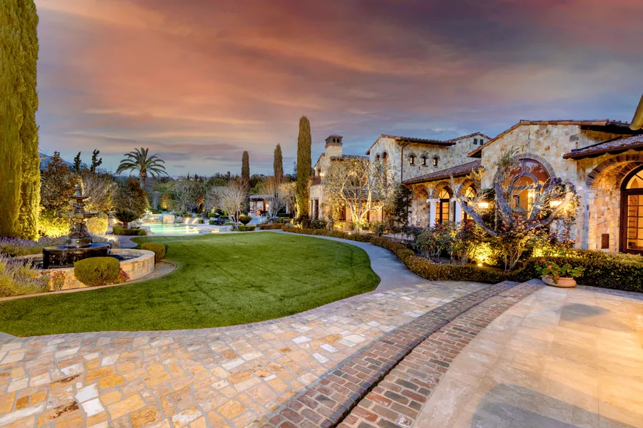Timeless entertainers paradise with impeccably maintained grounds at the end of a cul-de-sac in the private, gated and prestigious Los Ranchos Estates (Coto de Caza). The six Bedroom, seven-and-a-half Bathroom estate invites you inside to be dazzled by 26 high colliding barrel rolled ceilings, a Gourmet Chef's Kitchen, and a breathtaking Great Room. Marvel at the grand expanse of entertainment area architecturally framed through the windows of groin vaulted ceilings throughout the main house. Exquisitely groomed lawn and ornate gardens surround a rock waterfall pool/spa, a separate pool house with Theater, a large Entertaining terrace, BBQ area, and a sunken Tennis Court. Adorned with the finest fixtures, the home features French Bone Merrier stone, exotic imported marbles, Venetian plaster, and bronze embellishments throughout the house along with solid walnut hand-carved cabinets. A library-style office, billiards room, formal dining room, wine cellar, state-of-the art technology, and separate guest retreat are all exceptionally incorporated into this magnificent, open living space. Importantly, the property includes a water well to support all landscaping and irrigation! This Estate ensures maximum privacy and tranquility. Exceptional quality.