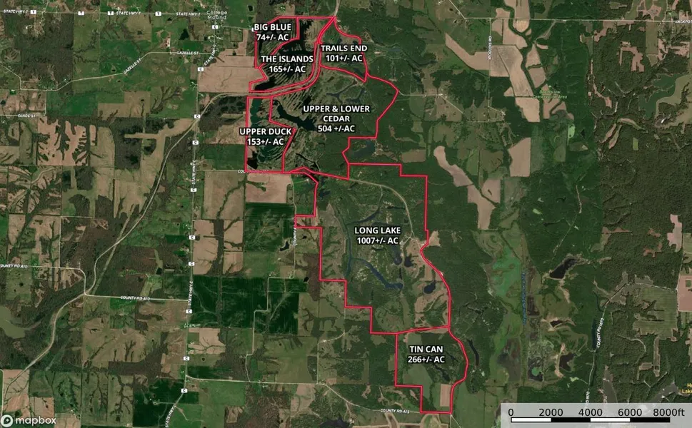 Upper & Lower Cedar is 504+/- acres that are home to trophy bass fishing and first-class hunting! Upper and Lower Cedar offers some of the most incredible build sites and exceptional views.