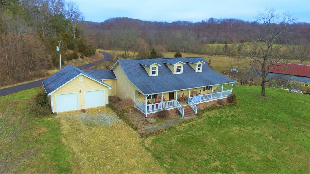 Well maintained country home sitting on 6.5+/- acres in rural Casey County Kentucky. The home was custom builtin 2006 and has 3 bedrooms, 3.5 baths and approx. 3,584 square feet of living space. Well insulated and constructed with 2x6 exterior walls with wind bracing built into the walls. Crown molding runs across the 9' ceilings in the home with custom touches everywhere you look. Hardwood flooring throughout the first floor with tile in kitchen and dining area. Living room with gas fireplace just off of the large kitchen with stove, refrigerator and dishwasher that will remain with the home. Large laundry room just off of the kitchen between the home and 2 car attached garage. Down the hall is a half bath on the right with two bedrooms both with its own full bathroom attached.
