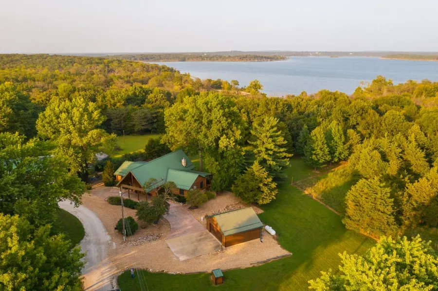 Built in 2010, this custom built, 3 bedroom, 2 bath log home is stunning in every way. The big, vaulted ceilings give an open and warm feel as you step in the door and invite you into the great room. The open floor plan is tied together well and has a gas fireplace and a bar area to round out the entertainment aspect of the communal space. The master bed and bathroom are very spacious and there is a sliding door out to the covered and gabled back porch. Another bedroom towards the back of the house also has a sliding door that takes you to the covered back porch, so you can catch the morning or evening glow with a warm cup of tea or coffee. The Real Log Home built log cabin spans over 2,000 square feet on the main level with an additional 1,000 square feet of unfinished storage in the basement. The oversized lot has plenty of grass and shade and backs up to Corps of Engineers land and Pomme de Terre Lake, which hosts a marina and four paved boat ramps.