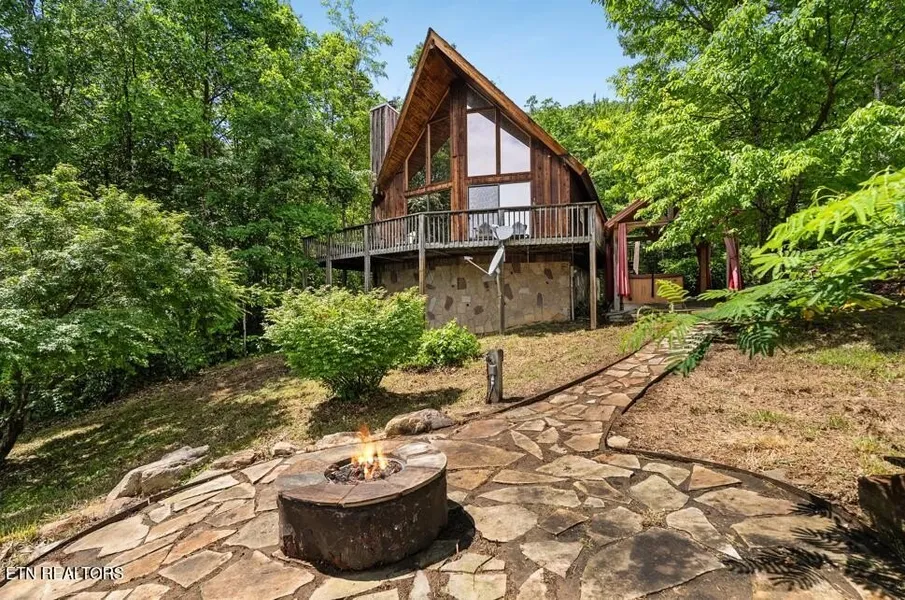 Spacious and full of potential, this 3 bedroom, 2 bath Smoky Mountain cabin offers 1,800 sq. ft. of finished living space, plus an additional 561 sq. ft. of unfinished garage space ideal for future expansion, game room, or bonus sleeping area. Located in a quiet, accessible area with a partial mountain view, this home features a striking wall of glass that brings in beautiful natural light and frames the surrounding scenery. Inside, you'll find tongue and groove throughout, a cozy rock gas fireplace, and a cabin layout that's just waiting to be furnished and styled for short-term rental success. It hasn't been on the rental market in over two years, so while there's no current income history, professional projections are available and show strong earning potential with some basic updates and added sleeping capacity. Outside, enjoy the peaceful setting from your covered hot tub pavilion, roast s'mores around the stone firepit, or simply relax among the low-maintenance rock landscaping. The metal roof provides durability for years to come, and the garage includes an EV charger, offering a modern perk for today's guests. Whether you're looking for a personal getaway or your next short-term rental investment, this property is a fantastic opportunity to customize and add value in one of the Smokies' most desirable markets. Projections of up to $90k available.