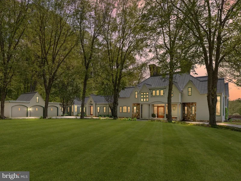 Welcome to "Westview," a stunning 54.5-acre gentleman's farm set atop one of Chester County's most desirable locations. Part of the Buck & Doe Easement, the property is surrounded by esteemed estates and offers the perfect balance of seclusion and convenience-just one hour south of Philadelphia, 40 minutes to Wilmington, DE, and a little over two hours to New York City by train. Accessed by a long, winding drive, the main house, nine-stall stable, and three-car garage are thoughtfully positioned in a geometric design along hardwood forests. Centered around a circular drive ringed by 18 paper birches, the home & stable mirror each other, with architectural angles & lines echoed throughout the residence. An award winning design by architect Harry Teague, the six-bedroom, six full & one half-bath home is bright and airy, with sweeping sightlines that frame the landscapes, gardens, and tranquil setting. Step inside to a gracious foyer leading to the Formal Living Room on the west side, where cathedral ceilings, a wall of windows, French doors, & a dramatic fireplace with polished granite & stone create an elegant gathering space. The Formal Dining Room boasts a curved wall of glass, high ceilings, and built-in shelving with southern views. The spacious Family Room, the heart of the home, features a granite and concrete fireplace, built-in seating, and French doors opening to the pool area. A large island connects this space to the Waterbury-designed kitchen, which includes premium features: SubZero refrigerator & freezer flanking a bar sink with SubZero wine fridge, a six-burner Thermador range with double ovens, Dacor microwave & warming drawer, a 2nd island, vaulted ceilings with pendant lighting & skylights, and polished Italian marble countertops. The adjacent Butler's Pantry & Bar Area shine with custom cabinetry and Hermes wallpaper accents. The eastern wing houses the Primary Suite, accessible via a dramatic hallway. This sanctuary includes curved walls, dual sets of French doors, his-and-her bathrooms and dressing rooms, and multiple closets. Nearby, you'll find two additional bedrooms with a Jack & Jill bath, the laundry room, the farm office, and a rear entry to the garage. A convenient dog kennel is also located here. Upstairs, Bedroom 4 enjoys its own full bath, built-ins, and walk-in closet, while Bedrooms 5 and 6 share a full bath. A dramatic library overlooks the grounds, and a balcony off the main hall provides the perfect nook to relax with a book. The lower level offers flexible space with a full bath, two cedar closets, a workout area, and a secondary family room with custom cabinetry and walkout access to the pool. Outdoor living shines with south-facing terraces and patios, perfect for both casual days and elegant entertaining. The pool and spa overlook a five-tiered perennial garden, with stairs descending to a fire pit patio for enjoying evening sunsets. The gardens and grounds are designed to maximize the property's breathtaking views and natural beauty, creating a magical atmosphere throughout. Equestrian amenities mirror the home's craftsmanship, beginning with the 9-stall center aisle stable featuring a wash stall, tack room, feed room, and equipment storage. Above, a one-bedroom, one-bath apartment offers comfortable accommodations. The adjacent 70'x150' indoor arena features high ceilings and motorized bi-fold doors for natural light and ventilation. There's also a 70'x200' outdoor arena for sunny-day training. Seven pastures, ranging from half an acre to over 3 acres, plus 4 dry lots & 7 run-in sheds, offer flexible options for horse care. Most fields are equipped with electric & water access. Adding to the property's appeal, over 20 acres of woodlands feature private trails for riding, hiking, or peaceful exploration. Offered for sale for the first time, "Westview" presents a rare opportunity to own a remarkable estate. An adjacent 32.5-acre parcel is also available (MLS PACT2096934)