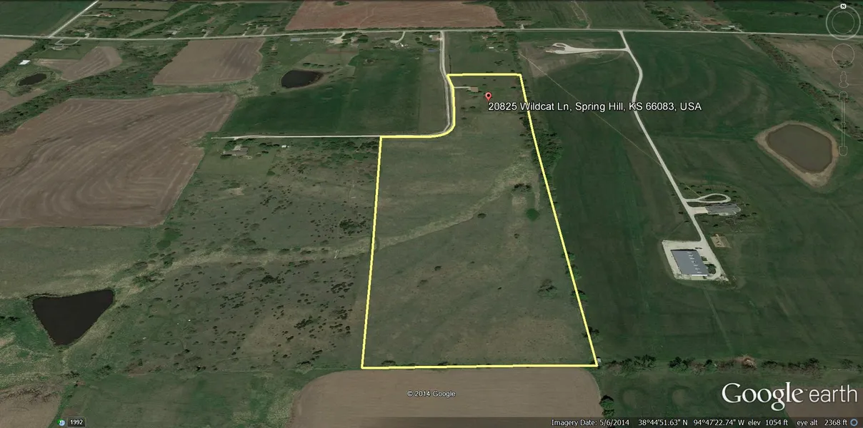 Coming south on S.H. 169 into Spring Hill, KS, take 199th St exit to N. Webster St., and follow south to W. 207th St. Then follow 207th St. approx. 2 miles east to Wildcat Lane. The property begins approx. 1/4 mile south on Wildcat Lane, left side of road. (Watch for signs).