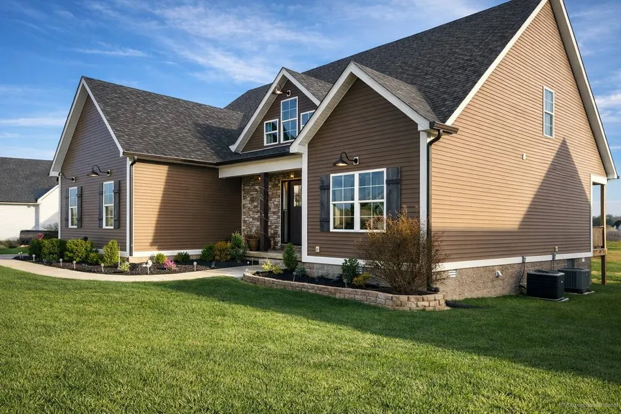 3010 sf home with 5 bedrooms & 3 baths on 0.7 acres. Located only 9 miles from Scottsville & 14 miles from Bowling Green. Upper level has just been completed - all new! Large living area, 2 bedrooms, 1 full bathroom and several storage rooms with flooring and lights on upper level. Covered back porch, ventless gas fireplace, stainless kitchen appliances included. Pretty white kitchen cabinets with granite countertop & subway tile backsplash. Tiled showers and a tub shower combo. 2 car attached garage. Black topped drive. Landscaping. New gutters and recent grading with re-seeding.