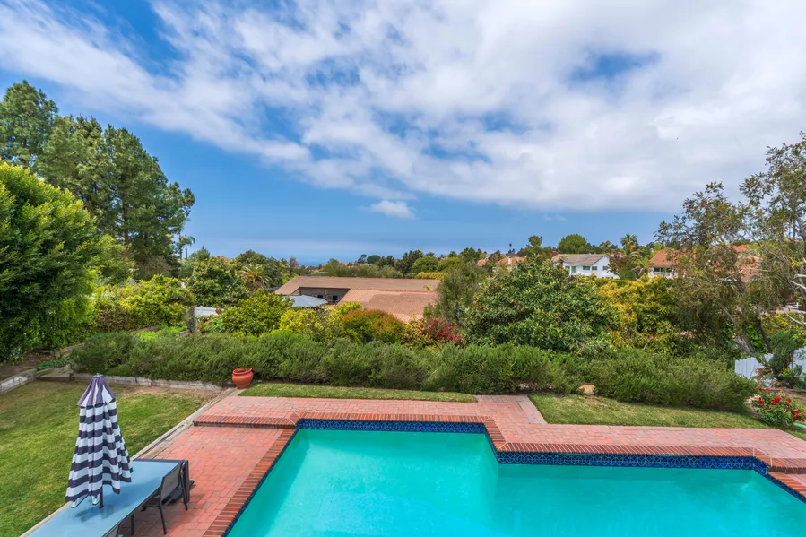 Located within the prestigious guard-gated community of The Ranch, this expansive property offers space, privacy, and spectacular ocean views. Step through thegrand double doors into a soaring two-story foyer, highlighted by a dramatic staircase that sets the tone for this elegant five-bedroom, three-bathroom residence. Situated on an impressive 18,789-square-foot lot, the home combines traditional charm with comfortable living. The formal living room features a fireplace andflows seamlessly into the adjacent dining room—ideal for entertaining. The spacious kitchen is equipped with a Sub-Zero refrigerator and opens to a warm andinviting family room with a second fireplace, creating the perfect gathering space. An enclosed covered patio extends the living area and leads to a large backyardoasis complete with two grassy play areas, a sparkling pool and spa, and plenty of space to unwind or entertain. On the main level, you’ll also find a guest bedroomand home office, a full bath, and a laundry room with direct access to the three-car garage. Upstairs, the generous master suite offers a true retreat—featuring acozy fireplace, dual walk-in closets, a private sunroom, and an outdoor deck with ocean views. Three additional bedrooms complete the upper level. As a bonus,steps down from the backyard reveal your own private orchard, filled with a variety of fruit trees—bringing a touch of nature and tranquility to this alreadyextraordinary home.