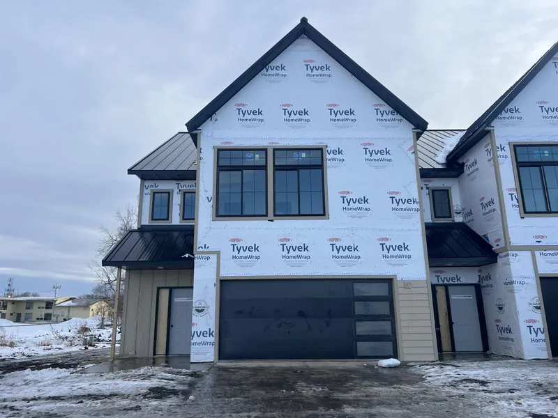 Welcome to North42! This beautiful townhome is part of Phase 1 of an exciting new development centrally located in Vermillion just 2 blocks from USD campus and the Dakota Dome. Thoughtfully designed with a modern farmhouse aesthetic, this home offers a truly unique layout you won’t find anywhere else. Step inside to a stunning two-story foyer where soaring ceilings extend to the second floor, creating a grand and open first impression with an upper-level overlook. The main level features a spacious open-concept floor plan, including a stylish kitchen with island, walk-in pantry, and designated dining area with a sliding glass door leading to the backyard patio. A roomy living area, convenient mudroom, and half bath complete the main floor. This end unit also offers extra yard space, additional privacy, and extra windows in the living room, flooding the space with natural light. Upstairs, the primary suite offers a private retreat with a double-sink vanity, tile-surround shower, and a spacious walk-in closet. Two additional generously sized bedrooms and a full bath complete the second level. Throughout the home, you’ll find thoughtfully selected finishes including tile kitchen backsplash, tile tub and shower surrounds, beautiful modern lighting, and luxury vinyl plank flooring throughout the main level, stairs, and landing. Each unit will feature a unique mix of finishes for added character. An attached two-stall garage completes this exceptional property. Estimated completion is spring 2026, but showings begin immediately—don’t miss your opportunity to be part of this exciting new development. Covenants and HOA details coming soon. For more information, please visit .