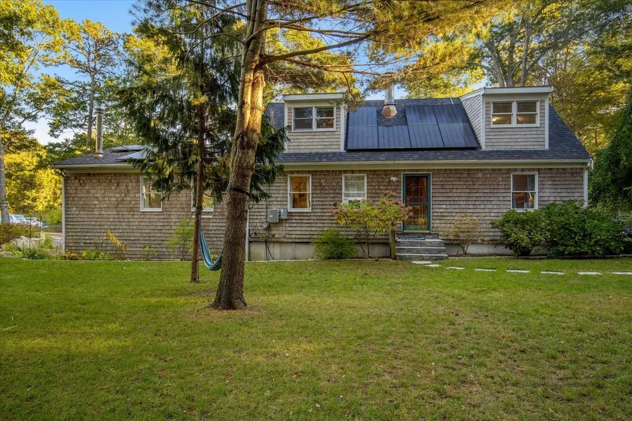 Tucked in the heart of Falmouth near scenic cranberry bogs and conservation trails, this thoughtfully updated 3 BD Cape with a den offers the perfect blend of privacy and comfort. Set on a lush, tree-lined lot, the home's inviting shingle exterior and solar panels hint at both classic Cape charm and forward-thinking efficiency. Inside, sunlight fills the open floor plan featuring a bright, renovated kitchen with gas cooking and spacious living and dining areas complete with wood-burning fireplace and wood stove. The flexible layout includes multiple work-from-home or play spaces, while the serene primary suite offers a peaceful retreat. Outdoor living shines with a sprawling landscaped yard and mature trees for shaded sitting. A two-car, insulated garage, walk-out basement - possible ADU, and 4BD septic complete this well-maintained home. Minutes from Mashpee-Falmouth line amenities, beaches, and scenic cranberry bog walks-this is Cape Cod living at its most relaxed and refined.