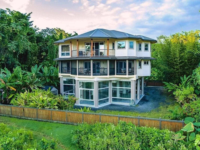 The Hilo Beach House is a successful multi-unit, beach-front, short-term vacation rental, STVR, bordering Onekahakaha Beach Park for easy ocean access and front-row views of the Pacific Ocean. A protected white-sand cove is located just steps away from this amazing opportunity. Offering 4 luxury-studio units on the first floor, a 2 bedroom, 2 bathroom residence on the top floor, 2 laundry rooms, linen storage, office, a guest reception area as well as a grand lobby and event area. The air-conditioned, luxury-studio units are decorated and furnished with handcrafted pieces from Bali and feature screened-in balconies boasting ocean and garden views. One of these units includes a full kitchen and the other 3 units include kitchenettes. When accommodating larger parties, the unit with the full kitchen can also be accessed directly from its adjacent unit. The main residence on the top floor impresses with an open layout, plush master suite and another amazing balcony with front-row, ocean views. Grand lobby comes equipped with solar and rain shades and is currently hosting yoga and dance classes. The sum area of these improvements totals over 6,300 sqft. Fenced on every border and landscaped with a tropical setting. Automatic gate with optional keypad entry. Ample parking as well. Motion lighting & video surveillance system with mobile phone notifications. All vacation rental furnishings, linens, etc. are included. Built compliant with V-.75 Resort-Zoning so vacation rental permits aren't required to conduct business as a vacation rental. Please visit the "Hilo Beach House" vacation rental website for a detailed description of the rental units.