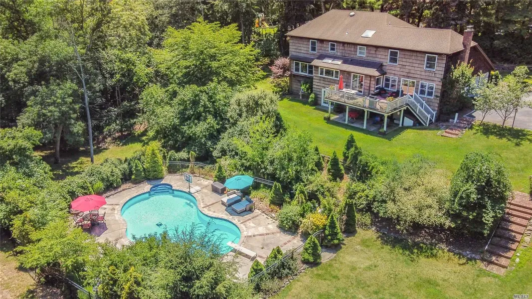 Enjoy what life has to offer, from every angle of this private, over-sized 4 BR, 2.5 Bath Colonial. Sitting beautifully in the bell of the court, on a shy 1.5 acres.This wonderful home offers 3 levels of comfort & spacious living. Wake up in your enormous master bedroom en-suite w/large walk in closet. Enjoy your morning in your new custom kitchen w/quartz counter tops, stainless steel appliances, large center island w/custom cabinetry, butler pantry, breakfast nook & large open windows.Breakfast area has sliders that lead to an expansive outdoor deck overlooking views of your backyard retreat.Featuring a beautiful heated in ground pool w/dual water fountain displays. All surrounded by decorative cement patio, fire pit area & exotic fruit trees & privacy plantings.Large family room w/wood burning fireplace, 20'+ entrance foyer, formal living room & dining room. Full walk out finished basement w/room for billiards, darts, movies & other entertainment possibilities. A Must See!