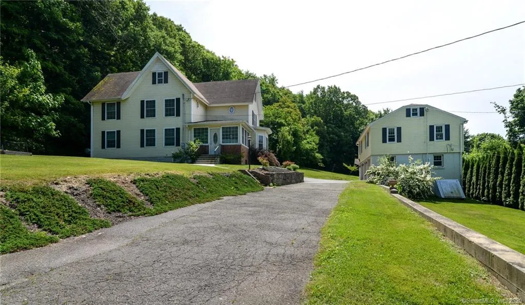 Country living with a convenient commute! Large privae remodeled Colonial with detached 3-car garage and 2 BR in-law apartment above garage on 1.73 acres at the end of a cul-de-sac. Built in 1880 and renovated top to bottom 2000's, nicely appointed with hardwood floors, French doors, granite countertops, fully applianced, new mechanicals, main level laundry. Main level sunroom entryway, Living Room, Dining Room, Family Room, Eat-in Kitchen, Half bath and laundry room. Large bright rooms, energy efficient with thermopane winddows and lots of light. 3 airy, comfortable berooms. Master Bedroom suite with modern bath and vintage feel, beautiful deep tub, separate shower and 2 sinks. Full bath in upstairs hall. Well maintained with tons of parking in 3 car garage and paved driveway, beautifully kept yard with stone walls and great outdoor living space. In-law apartment is almost 1000 sq ft, all newer with hardwood floors. Living Room, Eat-in kitchen, 2 bedrooms and a full bath. Plenty of storage room in house attic and large unfinished basements in both house and in-law. Great location and value!