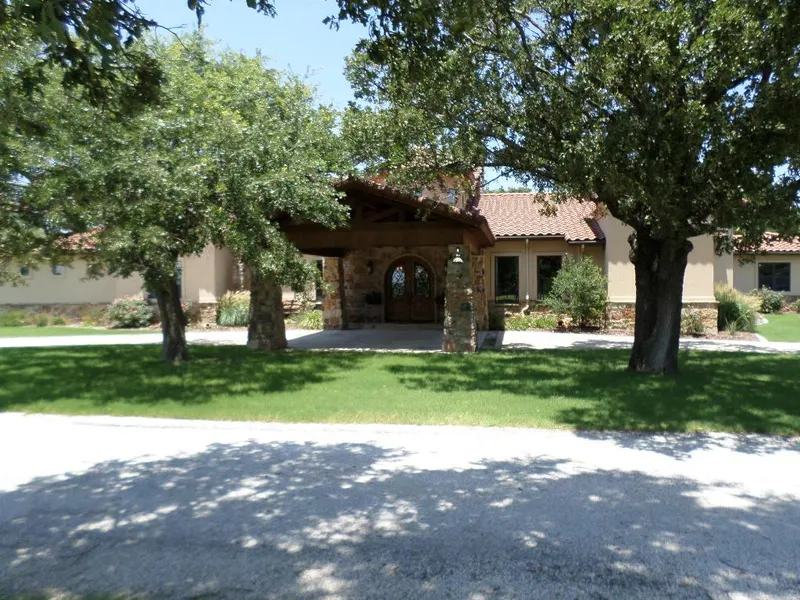 Country Showplace! 23.18 acres with a beautiful custom home built in 2007. A one-story Tuscan home, rock and stucco with clay tile roof, 4995 sq' living area according to MCAD. 3 bedrooms, Master bedroom has a fireplace and a screened porch. 3 1/2 baths, office, dining room, exposed beam living with a fireplace. Butler's pantry, wine room with seating, and a large utility room with a shower. Gourmet kitchen with a commercial stove, fireplace, and a 5'x10' island with specialty faux finish cabinets. Outdoor kitchen with a wood burning fireplace, grill, gas, burner, sink, refrigerator, and a TV. A salt water pool overlooking rolling acreage and beautiful oak trees. 100'x60' barn with 5 horse stalls, tack room, feed room, and a pull through alley, implement shed, and a 1144 sq' apartment (according to MCAD). Lighted 150' round pen with viewing stand, small breaking pen, horse walker, roping pen, 3 fenced runs with fresh water and sheds. Paved driveway to the house with cedar stave fences, 1 stock pond, 2 water wells. Sellers with sell all improvements and 125.71 acres (includes 1 more stock pond) for $1,700,000. Must see to appreciate the beauty!
