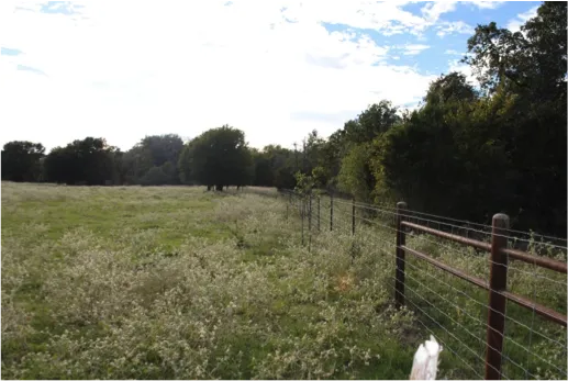 This property is located in between county road 324 and 325. It has a a large open field in the front of the property, with wooded areas to the rear. This property is split into two sections via net wire fence, with the northern section being thick, tall trees that have Resse creek, a seasonal creek running through this area. Post oak and cedar trees make up the dominant tree population while there is an established pasture of both coastal bermuda and Tifton 85 which are popular for cattle grazing. This property has 1248 of road frontage.