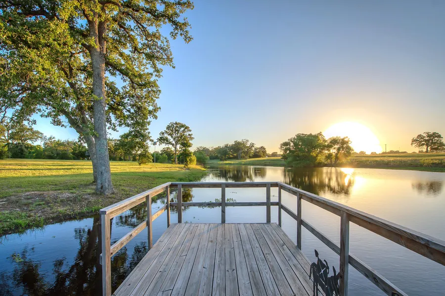 Imagine yourself being part of nature & living green. Enter this picturesque property, travel to the cedar-lined bridge over the meandering creek. Wind around the road to the Tiny Texas Home made for sustainable living with plenty of land to build your dream home. You cannot help but notice the open lake house built of cedar posts, reclaimed wood and oxidized rust tin, with a 20 pier over the beautiful 4 acre lake all surrounded by 23.89 manicured acres. Can you see your family enjoying this?