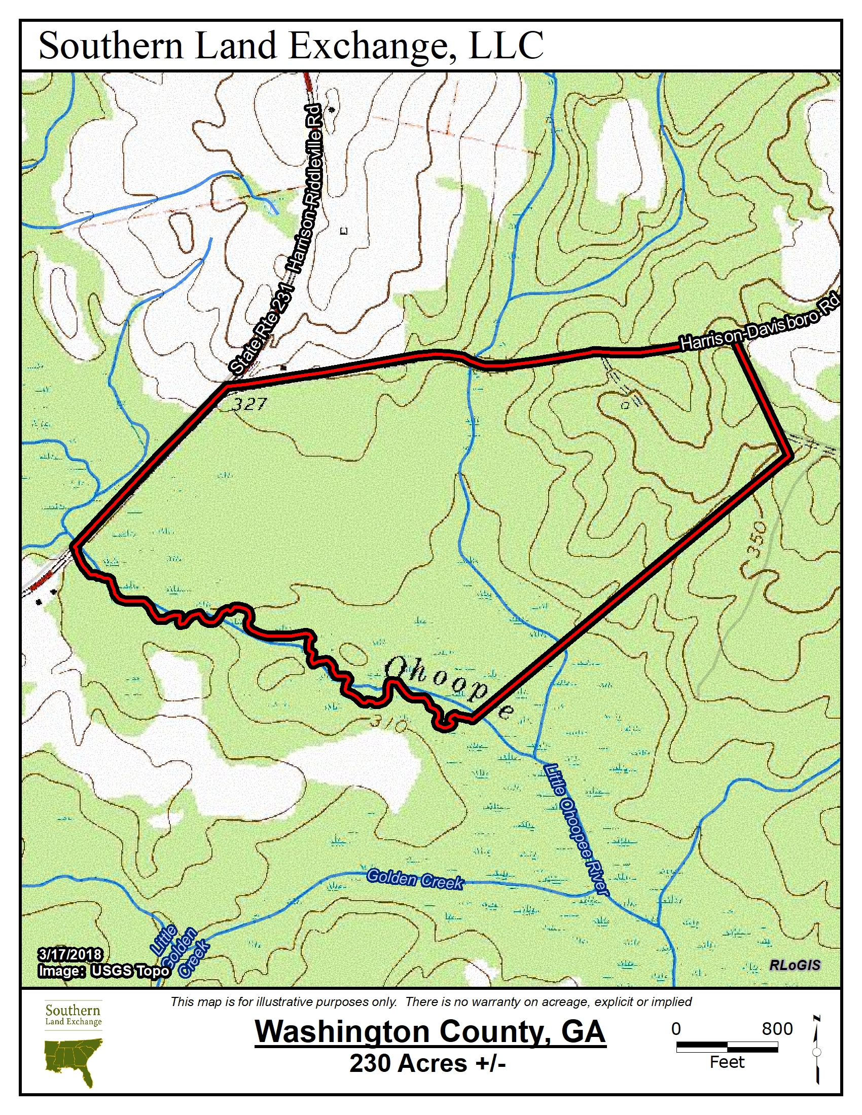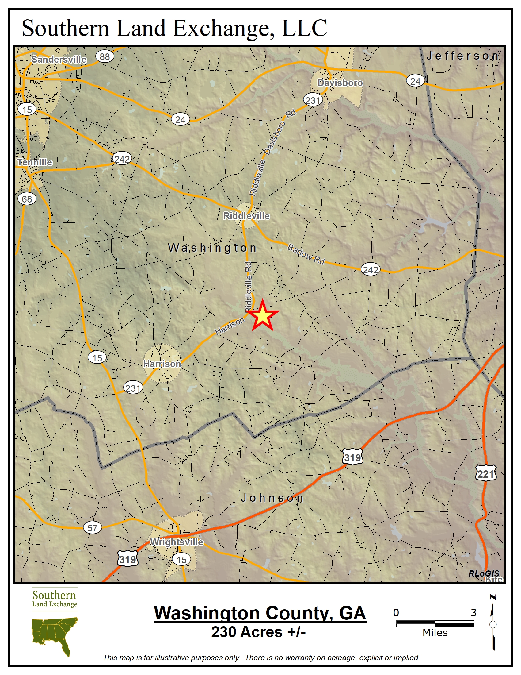 This property is an ideal 230+/- acre recreational tract. The land has good access with long frontage on the Harrison to Riddleville paved road and the Harrison to Davisboro Road a county-maintained dirt road. There is approximately 100 acres in 19 year old planted pines. The balance of the land is hardwoods. There is a small creek that cuts through the property and the Tract has long frontage on Ohoopee River with an old tenant house to use as your hunting camp. Create your own hunting preserve and manage the timber to cut a little wood and pay some bills. Life is good.