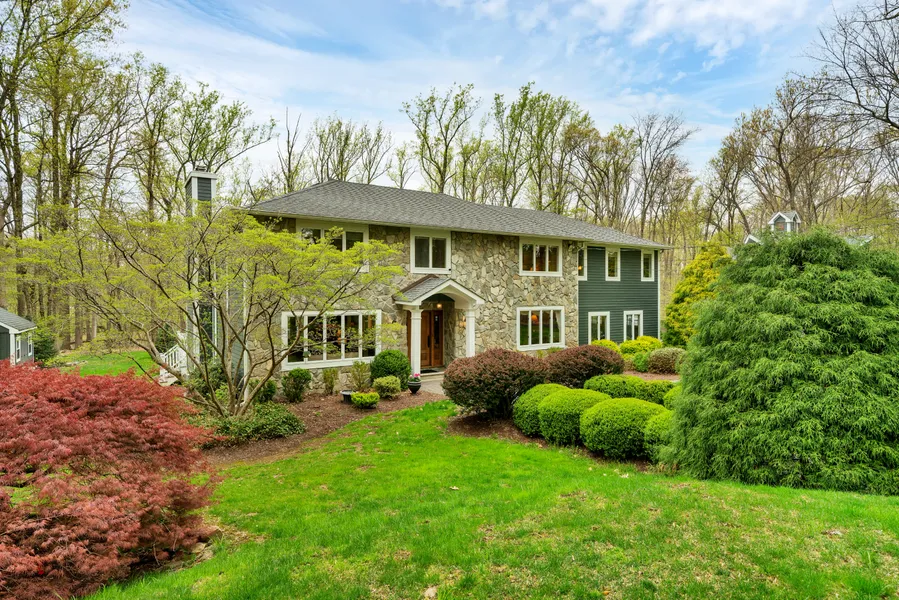 Nestled on just over three park-like acres, where privacy abounds, this four bedroom, two and one half bath colonial is the one you've been searching for complete with an in ground pool and brand New Liner on 7/18 being installed, cabana, and carriage house/detached garage! Immediately feel at home as you enter the foyer of this custom colonial with hardwood floors throughout most of the home. The first level features a sunken living room with crown molding, and is open to the family room with stone fireplace complete with a wet bar with beverage refrigerator and granite countertops. The eat in kitchen boasts granite countertops, stainless steel appliances and ample cabinet space and countertops, including a built in desk area. A slider leads to the large composite deck, overlooking the beautiful backyard and pool. A formal dining room with custom molding and powder room complete this level. Upstairs, the Primary Suite features a tray ceiling with lighting, sitting room with gas fireplace, and stunning full bath with a jetted tub, stall shower with steam, and two walk in closets. Three other bedrooms, a full hallway bath, and laundry room complete this level! The partially finished basement adds even more living space, as well as plenty of storage in the unfinished section. The possibilities are endless with the detached carriage house. Newer furnace, Air Conditioning , and includes a whole house generator! This home is perfect for entertaining or being your own private oasis! Do not pass this one up!