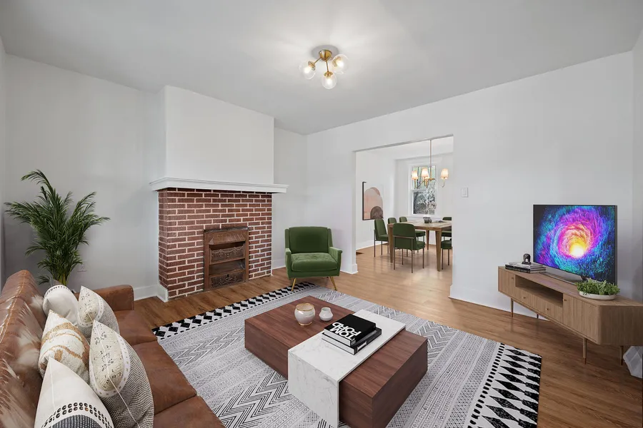 Renovated from top to bottom with timeless finishes, this 3-bed, 1-bath home just 3.5 miles from Downtown is a comfortable, convenient respite. A color-drenched exterior that pops against vintage Craftsman details makes a striking first impression. Low-maintenance composite decking on the front porch introduces a foyer adorned with original trim and stair rail. The bright living room flows into the dining room, where an original built-in with glass-front doors nods to the home's past. Admire stone counters and never-been-used appliances in the stylish kitchen. Upstairs, the spacious primary bedroom boasts an expanded walk-in closet, while two additional bedrooms and a renovated hall bath complete the layout. A full-height basement offers storage and laundry. Out back, enjoy a patio, grassy yard, and a meandering path to the one-car parking pad. Just 0.3 miles to Brownsville Road shopping and amenities.