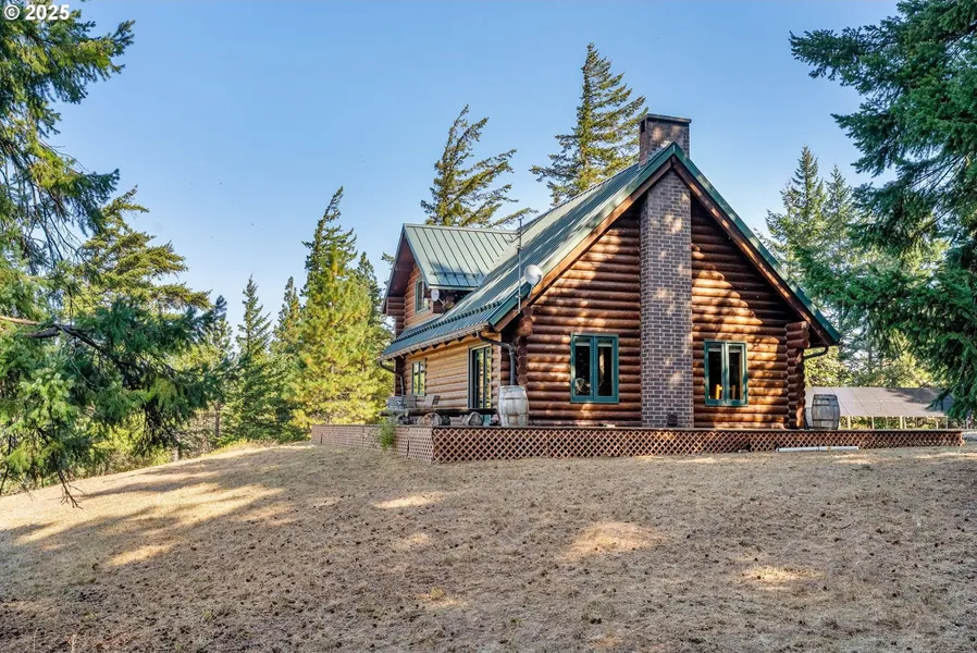 Perched on 10 private acres above Hood River, 2300 Elder Road is an authentic 1985 log cabin built with imported Montana fir logs, meticulously maintained and upgraded since the current owner purchased it in 1999. This 1,404 sq ft home features 2 bedrooms and 1.5 baths, including a 468 sq ft upstairs loft with half bath, custom floor-to-ceiling library, and rolling ladder - the perfect quiet space for the avid reader. Expansive panoramic views of the Hood River Valley create a breathtaking backdrop, while a cozy woodstove and wraparound deck enhance the cabin's warmth and charm. Since ownership, consistent maintenance and thoughtful updates have been made, including exterior logs professionally treated in 2024, a metal roof installed in 2001, solid copper gutters (2015), updated windows and door (2014), all-original red oak flooring, solar panels installed in 2023 in collaboration with Hood River Electric, EV charging station added in 2022, and updated appliances. A new well pump and pipes were replaced in 2016. Outdoor features include two spacious sheds for firewood and extra storage, an outdoor shower, and a rustic wood-burning hot tub offering sweeping valley views that highlight the cabin's classic Northwest charm. All furnishings, custom-created specifically for this cabin, are negotiable. With county-maintained road access, proximity to town, nearby hiking and mountain biking trails, and fire-protection-minded groundskeeping, this property offers a rare combination of privacy, natural beauty, and turnkey Northwest living.