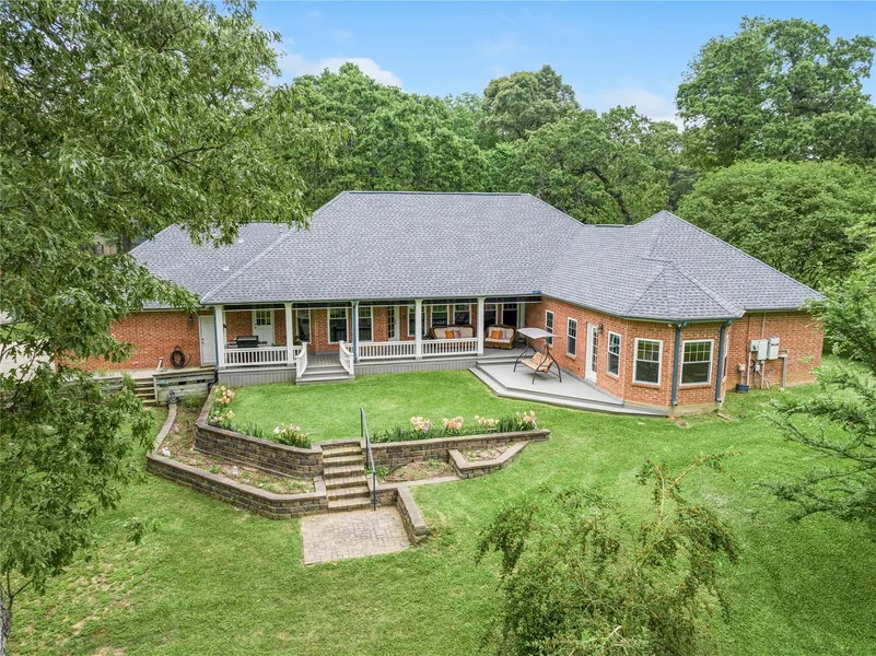 Welcome to your private sanctuary nestled within a wooded 1-2 acre lot, accessed by a private charming circular driveway. Lush fruit trees and a separate vegetable garden offer the bounty of nature, while a quaint chicken coop and storage shed provide practical amenities. Impeccable landscaping enhances the tranquility of this oasis. Step onto the covered back porch and immerse yourself in serene views of the surroundings. This single-story home features fresh paint and boasts wood and tile floors throughout. The spacious kitchen is a chef's delight, equipped with an oversized island featuring a gas cooktop and a separate prep sink. The primary bedroom exudes comfort and elegance, featuring a generous size and a cozy sitting area overlooking the picturesque backyard. Retreat to the updated master bath, where a bench invites you to unwind after a long day. With its blend of natural beauty and modern comforts, this property offers a harmonious lifestyle in a secluded setting.