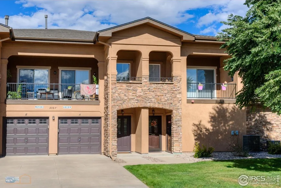 This condo comes with a REDUCED RATE as low as 4.990% (APR 5.494%) as of 10/17/2025 through List & Lock. This is a seller paid rate-buydown that reduces the buyer's interest rate and monthly payment. Contact agent for more information. Beautiful Condo at Ute Creek Golf Course - Move-In Ready with Modern Upgrades! Welcome home to this stunning condo just steps from Ute Creek Golf Course, where comfort and convenience come together. Park your EV in the oversized two-car garage, already wired for charging, with plenty of extra storage for all your gear. Step inside to a dramatic two-story entry with tile inlay in wood-look flooring, offering the perfect spot for a drop zone. Upstairs, the open-concept layout is filled with natural light. The living room features vaulted ceilings, a cozy fireplace with a sleek tile surround, an updated ceiling fan, and direct access to an oversized balcony overlooking greenspace-ideal for morning coffee or evening relaxation. The kitchen is a cook's dream with leathered granite countertops, a breakfast bar with built-in charging stations, and 42" maple cabinets with under-cabinet lighting. A pantry and premium appliances-including a French door refrigerator and a 5-burner gas range with a convertible oven-make cooking and entertaining effortless. The primary suite is a true retreat with vaulted ceilings, plantation shutters, balcony access, a luxurious 5-piece bath with a soaking tub and spacious walk-in closet. A second bedroom offers flexibility for guests or a home office, while the dining area adds a touch of elegance with its art niche. Convenient upstairs laundry keeps daily living easy. A/C and furnace are 5 years new. Enjoy peace of mind with a pre-inspection and a 14-month home warranty included. This home blends modern upgrades with low-maintenance living in a prime location, perfect for a lock and leave-don't miss it!