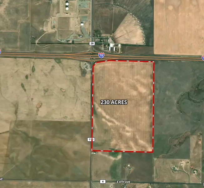 Discover an unparalleled opportunity with 230 acres of prime land available for sale at the strategic intersection of Manila Road and the I-70 interchange. This expansive site is perfectly suited for many uses and offers incredible versatility and potential. The property is in the Urban Service Boundary and slated to be rezoned to Industrial or Mixed Use with high density. Manila Interchange will be growing very rapidly with development in Port Colorado, and the property is just 20 minutes away from Denver International Airport - one of the biggest airports in the world.