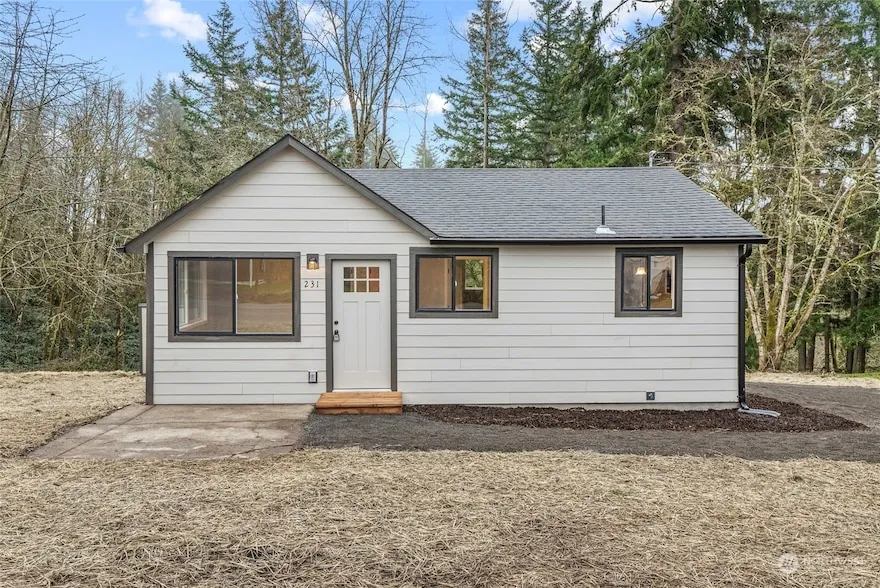 Come see this completely updated 2 bd 1 ba home situated on 2+ acres on a dead end street. Close to I-5 and many amenities. Home features newer roof, windows, siding, cabinets, counters, floors, doors, trims, fixtures, and more! Outside you will enjoy a beautiful landscape with room to build a shop or lots of room for parking. This home feels new, clean, and ready for you!