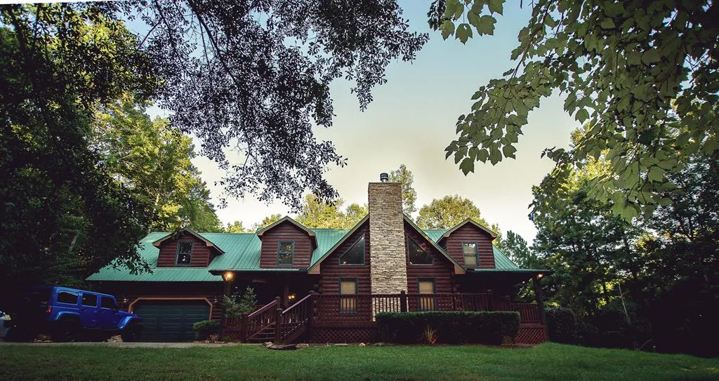 Absolutely stunning Dan Hodge log cabin nestled on private lot that backs up to beautiful creek.This home boasts 2 master suites in the open & spacious floor plan.Hand stacked rock gas fireplace,spiral staircase and wood floors in Living area.Kitchen boasts granite, stainless and breakfast bar.Upstairs master suite with fireplace, sitting area and wet bar,2 more bedrooms and a media loft.Great laundry & pantry area off kitchen.2 car garage.Double front porch and deck and 3 decks.New Hvac