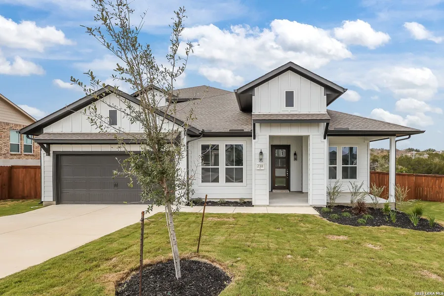 The Boca II floorplan is a stunning home in the desirable Homestead community, located on a private cul-de-sac! Its eye-catching stone and board-and-batten exterior is complemented by a spacious front porch. Step through the grand 8-foot front door into a soft, elegant color palette that creates a warm and inviting atmosphere. A dedicated study and large casual dining room near the front of the home are perfect for work or entertaining. At the heart of the home, the kitchen features a sprawling quartz island, built-in oven, gas cooktop, and walk-in pantry-ideal for any chef. The open layout flows into a bright great room filled with natural light. The private primary suite at the rear offers a peaceful retreat with an oversized shower, double vanity, and generous closets. Outside, enjoy your expansive covered patio with serene hilltop views and no rear neighbors. Tour this exceptional home today!