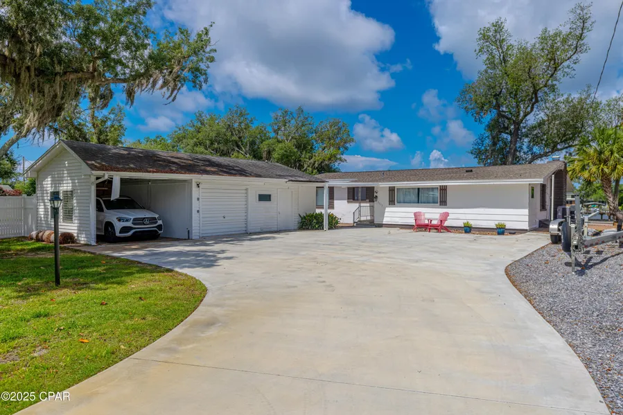 Take a look at this beautiful waterfront home with a new dock, seawall, and almost 1/2 acres of land. Great views of the Bay with pristine sunsets overlooking the Hathaway Bridge. Home has been fully remodeled and centrally located off 23rd Street, with minutes away from the beach. Deep access to the gulf from your dock. Home features an electric gate for security comfort. Large driveway with Detached garage and storage spaces. Walking into the main entrance, you are greeted by elegance with a remodeled kitchen to include stainless steel appliances and breakfast bar. Separate dining room with built in cabinets. Windows throughout bringing in natural lighting and views of the Bay. Large living room with an authentic wood fireplace, built in shelves, thus enjoying the tranquility of the Bay and Sunset. An additional bonus room/Florida room fully enclosed was added on at 9 x 9. It is surrounded by windows bring in natural lighting and full view of the Bay. Throughout the home you have wood flooring. Three bedrooms and 2 full baths, with separate laundry room. New seawall consisting of 75 feet of waterfront and close to 1/2 acres of property. The backyard incorporates a large custom wooden deck and new boat dock where you can sit and fish or take the boat out with Gulf Access. New custom vinyl privacy fence throughout. Sprinkler system on well. Enjoy sitting out on the deck watching the sunset and dolphins swimming by. Short term rental allowed. No HOA fees. Home has been on the short-term rental program. Can be sold fully furnished (depending on offer), turnkey.