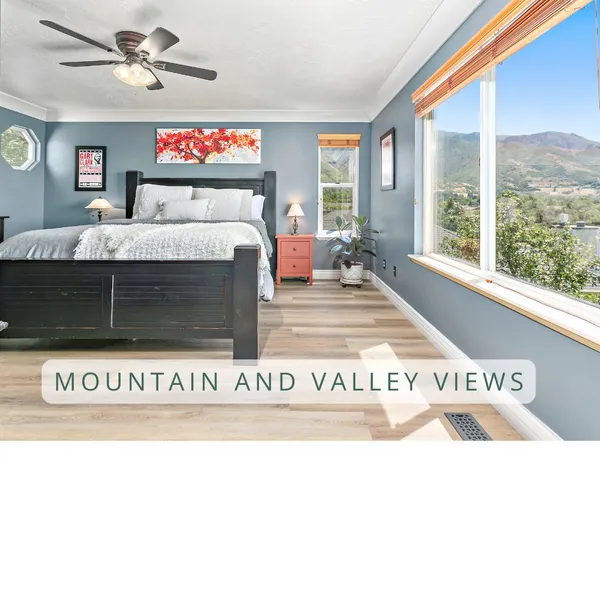 This home offers smart, comfortable living in a location that’s hard to beat, with a new roof, owned solar panels, secondary irrigation water, water-wise landscaping, and high-speed fiber internet helping keep utility costs low. Tucked away on a quiet cul-de-sac down a private road with quick access to I-89 and Antelope Drive, the setting feels both private and connected. The main floor features plantation shutters, a modern gas range, all appliances included, and two walk-out decks that make indoor-outdoor living easy, while the secluded yard with mature trees provides shade and privacy. Upstairs are four spacious bedrooms, including a primary suite with sweeping East Bench views to Antelope Island and a spa-style bath with a waterfall shower head and jetted tub, along with thoughtful touches like a laundry chute and central vacuum. The walk-out basement opens to tiered terraces and offers flexible potential for a future ADU or mother-in-law apartment, ideal for guests, rental income, or multi-generational living.