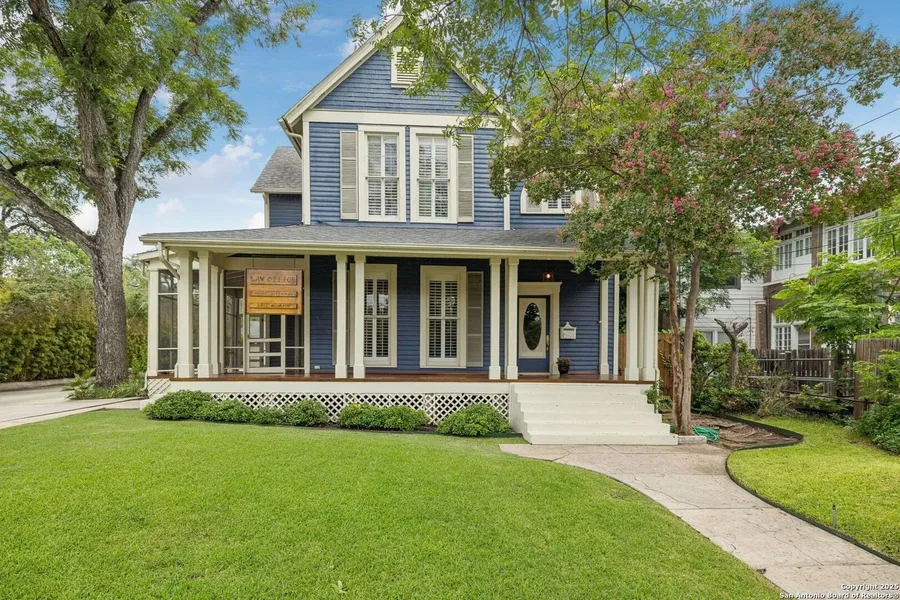 Seize this incredible chance to own a home in San Antonio's historic district. This stunning property in the coveted Monte Vista area sits on a .24-acre lot. Exuding historic charm, it is zoned commercial but is also ideal for residential use. Enjoy a prime location within walking distance of restaurants, shops, downtown, and the Pearl. The spacious and functional floor plan boasts high ceilings, hardwood floors, large windows, and abundant natural light. With ample parking, including a two-car garage and space for eight or more cars, you'll never worry about downtown parking. The gorgeous living area features a beautiful fireplace and chandeliers, offering a blend of class and sophistication. Don't miss this fantastic opportunity in the heart of San Antonio!