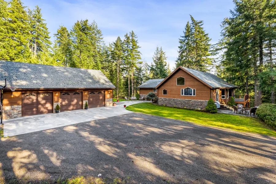 Custom Pacific Northwest Cedar Home nestled in the trees just minutes from the world-famous White Salmon River, downtown White Salmon's restaurants and The Hood River Bridge. This home offers room to spread out with 4 bedrooms, 3 bathrooms and additional office space. Large view windows allow the outside in, creating a private getaway in the trees. The main room features a stunning stone, propane fireplace. Don't miss the grand kitchen featuring a large island and outdoor access to the wrap-around deck for indoor/outdoor living. Large main-floor primary bedroom suite with double sink vanity, walk-in tile shower, soaking tub and walk-in closet. Large family room set up for a theater downstairs, with a sliding door patio walk-out. Main-floor and/or lower level laundry options. The 3-Car XL Garage has room for all your recreational toys; with full attic trusses to expand. Bordered by a year-round creek and rolling greenery! Original owners for this well-cared-for property!