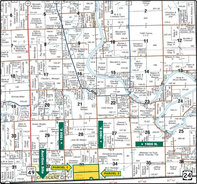 Research Parcel InformationApproximately 1 mile east of Crescent City at the intersection of Co. Rd. 1600 E. and Route 24. The farm is on the west side of Co. Rd. 1600 E. and north side of Route 24