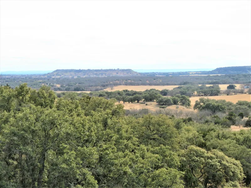 Land/Water: One of the most unique properties in this area! A deep valley with wheat field plots (approximately 20 acres, but more could be added) runs into four canyons creating a quiet, secluded haven for wildlife. The terrainis incredible-from the gently rolling bottom land punctuated by live oaks savannahs, some mesquite, cedar, and other native plant species to the dramatic limestone lined canyons and the upland country which is just as attractive as the valley and easy to navigate. The headwaters of seasonal Big Bluff Creek begin near the property and reportedly provide an impressive waterfall from the bluffs (during wet periods) which drain down into the valley, creating the potential for a large water feature. Driving around the horseshoe shaped uplands you have one incredible view after another of the valley and of distant Cut Off Mountain as well as the Blue Mountains to the south. The ranch falls from the north to the south with elevations from 1980 ft. to 1840 ft. There are several dirt tanks in strategic locations and could be enlarged and one water well which serves the main cabin and guest cabin and also provides water for wildlife and livestock via two water troughs. The well is 400 ft deep and is equipped with a hp pump and estimated gpm is 5. Neighboring ranches are larger with one exception, and no easements other than utility cross the property.