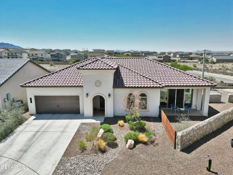 Immaculately maintained single story beauty located on a cul-de-sac view lot in a gated community! This home features: REFRIGERATED AIR, front yard landscaped to perfection, custom exterior moldings around front entry and windows, complete tiled roof, arched entryway, 8 ft entry door. Recessed lighting & tile flooring throughout, custom fur downs, picturesque windows bringing in tons of natural light. Dining room, family room and kitchen with open concept. Kitchen with enormous island, granite countertops, SS appliances, brick laid tile backsplash. Zoned master bedroom suite facing west for those amazing El Paso sunsets. Master bathroom with granite countertops, dual sinks, walk in shower with accents. Office with dual entry doors, full bathroom with tile reaching to ceiling. Sliding glass doors lead you to front patio with access to side yard and back area. Gated community has pickle ball courts and park plus much, much more!