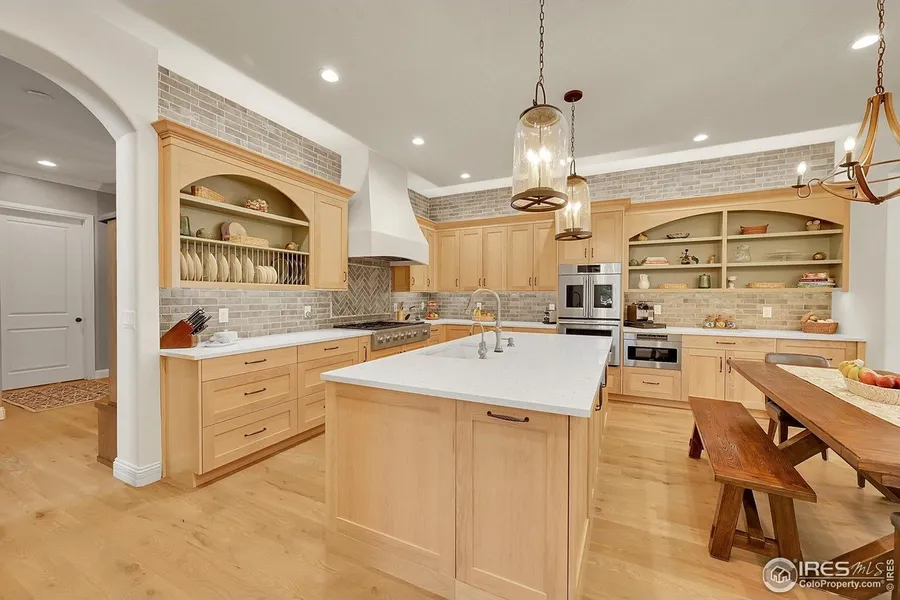 CUSTOM HOME: European country-inspired architecture into a masterpiece of refined craftsmanship. Step inside to find a stunning main-floor primary suite, dual home offices & a thoughtfully designed layout that balances comfort, entertainment, and effortless everyday living. Over $240K in premium interior renovations elevate this home, beginning with wide-plank 6" live-sawn white oak hardwood floors and a chef's dream kitchen that redefines culinary excellence. Crafted for both function & flair, the kitchen features custom shaker-style white oak cabinetry, quartz countertops, a professional 6-burner cooktop with griddle, a striking 36" vent hood & a French-door double oven with Wi-Fi Air Fryer. Thoughtful additions like a built-in mixer lift station, pull-out spice and snack drawers, double dishwashers, and a Thermador cabinet-depth refrigerator/freezer make this space a culinary haven. Entertain in style with a formal dining room & a dry bar with floating glass shelves-perfect for butler-style serving and seamless access to the kitchen and pantry. Head downstairs to the fully finished basement, where a state-of-the-art entertainment center, flat panel AV monitor wall, and an upscale wet bar await-complete with wine fridge, kegerator, beverage center, dishwasher, and sink. Exterior freshly painted September 2025, a new roof & two new humidifiers (2024). Outside, professional landscaping featuring large boulders & mature trees creates a peaceful, country-like setting-your own private retreat within a thriving community. Enjoy a lifestyle like no other with access to multiple pools, tennis & pickleball courts, baseball field, outdoor rink, parks, playgrounds, gym, & miles of scenic trails & open space. Conveniently located near Boulder, the Rocky Mountains, I-25, C-470, DIA, & downtown Denver.