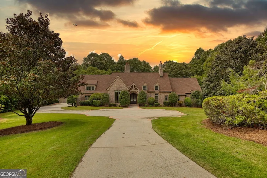 Welcome to this one-of-a-kind million-dollar estate, nestled on 16 secluded and manicured acres in the heart of Dacula. This grand Tudor-style home blends timeless elegance with comfortable southern living, offering unmatched privacy, charm, and character. A long, winding driveway leads to a stunning 4-sided brick residence surrounded by lush landscaping and mature trees. Inside, the home boasts classic architectural details including beamed ceilings, rich wood finishes, and stained glass windows in the screened sunroom that create a warm, inviting ambiance. Featuring 5 bedrooms and 4 bathrooms, this home includes a spacious master suite flooded with natural light, a Jack and Jill bath for secondary bedrooms, and an upstairs bonus room with its own bath and access to a non-functioning elevator-a unique feature with future potential! Cozy up by one of two fireplaces, located in the living room and kitchen, or enjoy a glass of wine selected from your private wine closet. The gourmet kitchen flows seamlessly into a bright breakfast area and the screened porch-ideal for morning coffee or evening entertaining. Additional features include an attached 2-car garage, detached 1-car garage, and a Koi pond that adds tranquility to the estate's natural beauty. The unfinished basement, with exterior access only, offers incredible potential for a staff quarters, rental suite, or workshop. Located in a sought-after area known for top-rated schools and convenient access to shopping and dining. Love to travel? The Gwinnett Airport is less than 6 miles away! This rare property combines old-world style with modern livability - Don't let it pass you by!