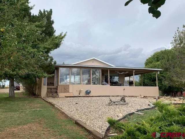 EXCELLENT LOCATION for short distances to recreational activities and peacefulness while viewing the mountains and valley views. Property is two miles to Narrraguinnep Reservoir and approximately 3 miles to McPhee Reservoir (2nd Largest Reservoir in Colorado). While entering into the property by a Solar Gate and the chain Link (pipe topped) fence enclosing the beautiful Evergreens, Seasonal and Fruit Trees (Plumb, peaches apples) have a Rainbird system for irrigation, bushes are on a drip system. The wooded area is a big plus for pasture and wildlife. A bonus is sitting on the one of the covered decks with views of The Mesa's, Ute Mountain, Shiprock, Valley views, Sunsets and night lights of the city of Cortez and don't forget the pond for the wildlife right below the deck. Outbuildings for parking, storage, etc. All on 12+ acres with M & I irrigation, walking paths to pond and flower gardens. Home is 2691 sf. 3 BR/2 BA Home includes a large Hobby room that can be a living quarters with the built in Murphy bed (which makes it a 3 bedroom) lots of counter tops, (could be kitchen area) and it includes vaulted ceilings + adjoining in- house shop that could be whatever you want it to be to fit your family. Kitchen in Main house offer over the sink large window for views, large pantry, kitchen bar, separate cabinet area for preparing food, etc. Master BR. with walk in closet and bathroom suite + access unto covered deck. You have additional rooms for storage and the possibilities are endless. 810 sf of covered wood deck, 400 sf of Trex deck, 300 sf of covered patio into front entrances, two large carports (1 attached and one not attached to home), You're in an area that offers hunting, fishing, boating, hiking, biking, horseback riding, camping, jeeping plus more recreational hobbies between here and Telluride, Durango, Silverton, Moab, Cortez and Dolores. Come and view this property and relax!!!