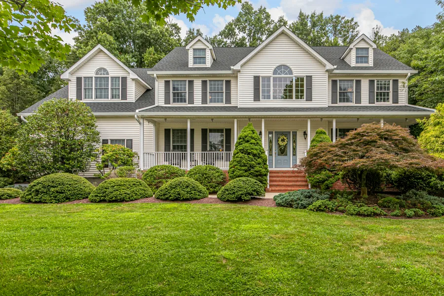 Discover the epitome of elegance in this stunning center hall Colonial in the desirable Belle Mead section of Montgomery Township with public water, sewer, and natural gas! This meticulously maintained home boasts numerous upgrades, including a modernized kitchen and baths, a new roof, gutters, and new garage doors, to name just a few. Step inside to find gleaming hardwood floors throughout, with walnut inlays adding a touch of sophistication to the dining room and formal living room. The first floor features a beautifully renovated kitchen with a new Bosch dishwasher, new LG refrigerator, and beverage fridge, as well as a Dacor cooktop, double wall ovens, subway backsplashes, and glass cabinetry. There’s also a mudroom with shoe cubbies, custom cabinets for extra storage, and a convenient home office near the powder room. The family room can be closed off from the living room and the kitchen for movie night and has a cozy gas fireplace to curl up in front of on a cool night. Upstairs, the spacious primary suite also includes the laundry, which has been cleverly relocated to the second floor. There’s also a luxury en suite with a skylight perfectly placed to make this oversized space a bright and cheerful place to start the day. The hall bathroom is up to date to service the other three large bedrooms. Outdoor lovers will be drawn to the backyard, offering a park-like setting with mature trees, pathways, a patio, and a shed. Fully fenced and extensively landscaped under current ownership, it provides a private retreat like no other. Here’s your chance to own a piece of perfection in Belle Mead!