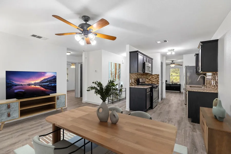 Charming 2-Bedroom home where comfort meets convenience! Nestled in a vibrant neighborhood, this delightful 2-bedroom, 1-bathroom residence offers a fully remodeled interior, with warmth and style. Standout features include a brand-new roof (3 months old), stainless steel appliances that convey, and a spacious backyard shaded by mature trees. Location is everything, and this home delivers! Enjoy the luxury of being just a short walk away from community amenities, including a neighborhood pool, splash pad, playground, and sport court! Minutes away from amenities, restaurants, and medical services, this home is ready for immediate move-in!