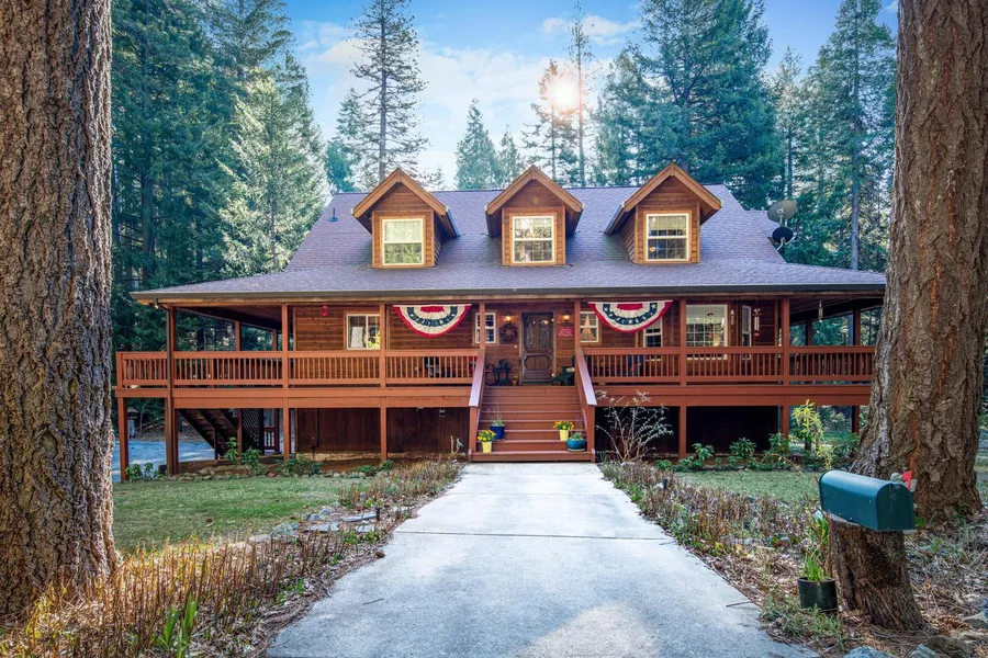 The Quintessential Mountain Hideaway! If you are dreaming of the sweet smell of conifers and all four seasons, this is the property for you! The moment you pull in the driveway be prepared to fall in love. Character and charm +++ Cedar siding & dormers make this home irresistible. Immaculately maintained with love, this home has that special feel you will want to call home. Spacious master suite and all main living on the main level, 3000 sqft of wrap around porch/deck, updated chef's kitchen with breakfast bar, great for gatherings, gorgeous slate hearth from floor to open, wood ceiling, open, light and bright yet cozy. Tons of storage and extra parking. Upstairs find 2 guest rooms, a full bath and a bonus space currently used for crafting. 2 finished bonus rooms at the garage level with a full bath also.10 minutes to Nevada City. This would make a fantastic horse property - right near the Pony Express trails - ride to Scotts Flat lake. 2 large outbuildings for hobbies & toys plus over 650 sqft of garage space. Wired for a generator. Water storage tank with a connected hydrant. Starlink internet available
