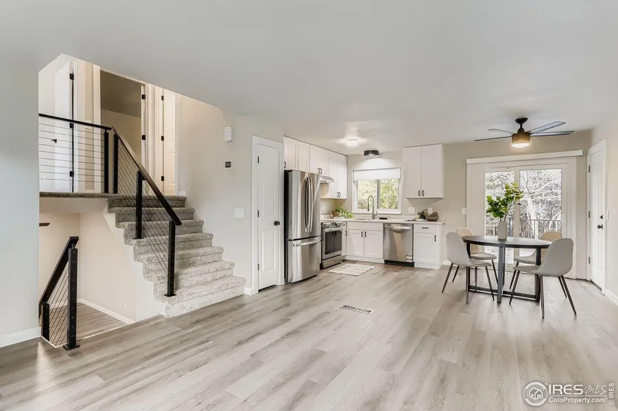 Welcome to this beautifully remodeled three-bedroom home in north Longmont's popular Park North neighborhood! Every detail has been thoughtfully updated, featuring fresh interior and exterior paint, new luxury vinyl flooring, plush carpet, stylish light fixtures, and updated hardware-including an elegant iron hand railing. The spacious great room flows seamlessly into the dining area and modernized kitchen, complete with brand-new stainless steel appliances. Step upstairs to two bedrooms, including the primary suite and with a barn door leading to the shared full bath. On the lower level, you'll a large family room, the third bedroom and half bath. Step outside to enjoy the huge new deck overlooking a sprawling backyard with large shade trees and mature landscaping-perfect for relaxing or entertaining. With a newer roof and a move-in-ready feel, this home combines comfort, style, and lasting value in an established neighborhood you'll love.