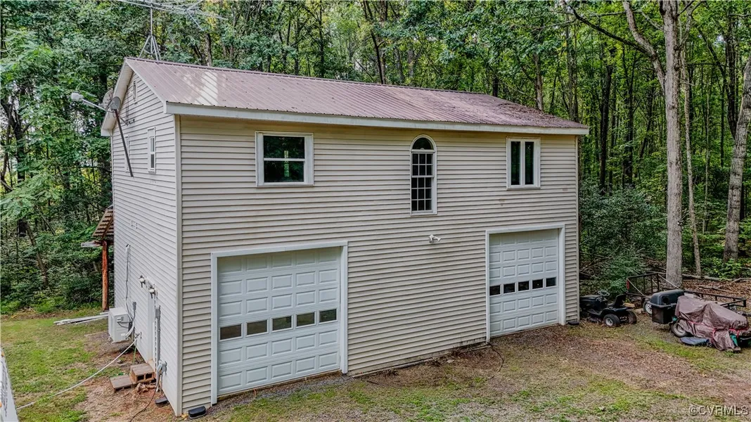 Your future barndominium awaits with the hard (and expensive) stuff already done—ready for someone to bring their vision to life. Current owners bought what they thought was an almost complete barndominium dream turned into a full gut and redo project with major upgrades throughout. The current owners removed the old electric that was there before and started fresh: all-new electrical (from the house to the pole) underground utilities, some new plumbing, new framing, and a permitted septic system (paperwork included). All county inspections—electric, plumbing, insulation—have already been completed. The structure features a massive garage on the main level with two 12-ft doors and a large center bay for storage or workspace. There's a brand-new mini split already installed for the main level garage, and while the doors aren't electric, the setup is flexible and spacious. Upstairs is framed for a 2BR/1BA layout with an open kitchen, living space, laundry, and all-new windows. The washer and dryer are already installed and in use. On-site you'll also find a generous collection of building supplies that will convey. Current owners have lived in camper trailer on site as they have completed the work. Interested in negotiating the trailer into the deal let us know. A rare opportunity to take over a thoughtfully prepped project with the permits, inspections, and infrastructure already done.
