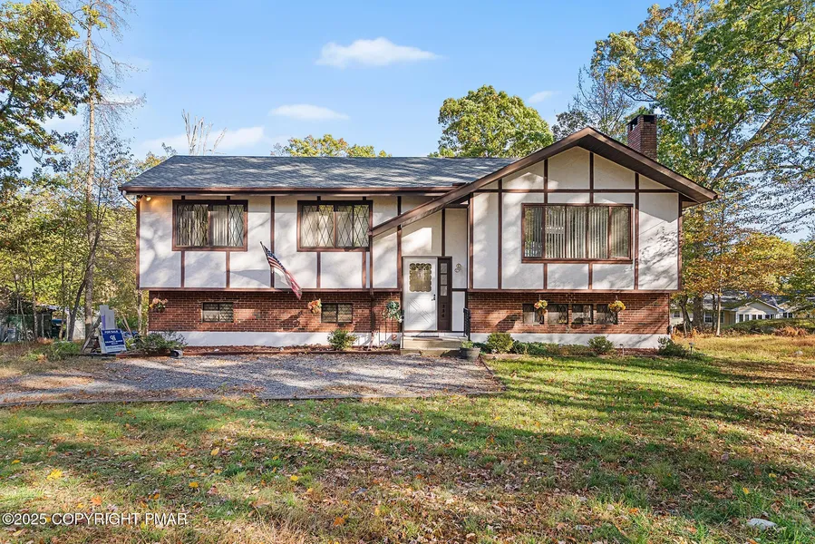 Pocono living without the HOA! This spacious and updated bi-level home offers over 2,500 square feet of living space. Enjoy privacy and convenience with a master suite featuring a full bathroom and an attached two-car garage. The home has been thoughtfully updated throughout, including a brand-new roof, newer flooring, fresh paint, and granite countertops. Additional highlights include a high-efficiency propane auto boiler providing reliable heat and updated vanities in all three full bathrooms.