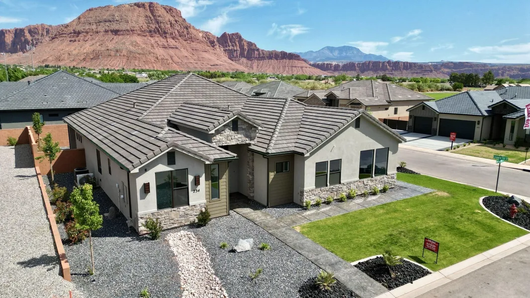 COMPLETED NEW CONSTRUCTION! Located in a quaint neighborhood, across from Unity Park, this home is situated on a corner lot. The floorplan is the ever popular S&S Homes, ''a home within a home:'' The attached casita includes a bedroom suite, separate living room, kitchenette, small laundry area, and private patio. The cabinets are beautiful warm knotty alder. GE CAFE appliances are a highlight, and the home has quartz counters throughout. Epoxy garage floors, and wired for surround sound. Close to trails, Tuacahn Amphitheatre, Snow Canyon, and Gunlock Reservoir.