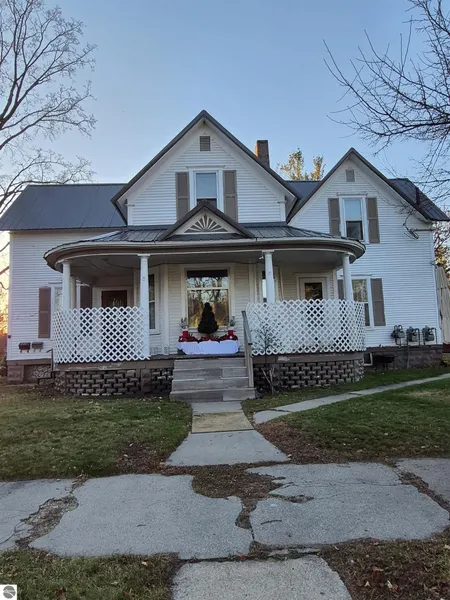 Great income producing & affordable 2 unit apartment home located close to downtown & schools plus within walking distance to Lake Cadillac, grocery store & restaurants! Larger 2 bedroom unit located on main level with access to full basement & has a HUD lease till 8/31/2026. Upper 2 bedroom unit is smaller, has a lease till 7/31/2026 & tenant mows the lawn with lawnmower that's provided in the detached 2 car garage that is shared between tenants. Newer steel roof, updated baths & new carpet 1st floor. Landlord pays heat & water bill. City certification recently done. Tenants pay electric & gas hot water bills. 24 hr notice required for showings & NO showings on Sundays.