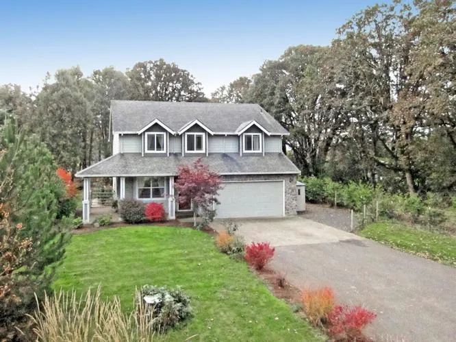 Enjoy this rural home only minutes from Newberg and Dundee. Popular 2 level floor plan with lots of storage space. Open spaces for entertaining with fireplace, hardwood floors and pantry. Wrap around covered entry. Upstairs deck with access from vaulted master suite. Enjoy your own park like yard with a fire pit, garden space, tree house and a path in the fully fenced flat, usable acres. Large covered back patio.