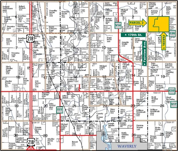 235 acres, m/l, located approximately 4 miles north of Waverly on the north side of Co. Rd. C26 (east of Fairview Ave.) will be offered in 2 parcels.