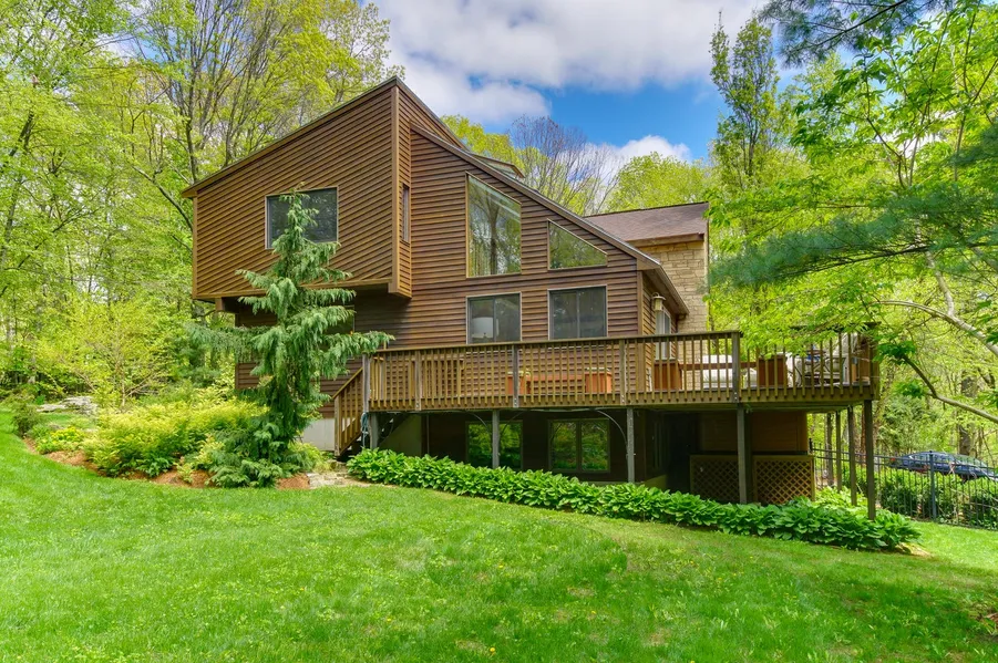 You can have your own Garden of Eden on 2-acres of professionally landscaped, fenced-in gardens. Walk among the beautiful plantings or simply contemplate your good fortune (perhaps with envious friends) from your field stone patio, warmed on cool nights by a fire pit. Or, you can soak it all in from your built-in hot tub on your 600-foot wrap around deck. As you come up your driveway, you'll smile at your stunning contemporary house with its handsome vertical grain cedar exterior. You'll keep smiling inside, where hardwood floors are everywhere & architectural windows provide ample light with rain-sensing skylights. Updates include a modern kitchen with butcher block counters, ss appl. & sliders out to an expansive second deck. The roof and boiler are newer; plus it is wired for 200 amps with a separate generator hook-up. There is plenty of storage & a separate 2-car garage. Only .5 miles to Westborough with all its shops & restaurants. No doubt about it, this home is a WOW!